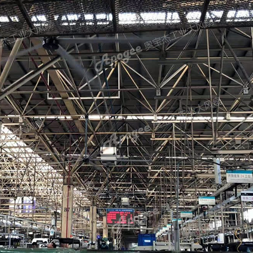 奧寶杰永磁工業(yè)吊扇已經(jīng)在眾多汽車企業(yè)得到應(yīng)用, 無(wú)論是大跨度工字鋼廠房,還是球形網(wǎng)架鋼結(jié)構(gòu)廠房奧寶杰工業(yè)吊扇都有成功案例。特別是,對(duì)于整車廠面積大, 地面設(shè)備多,物料多特點(diǎn), 奧寶杰采用核心技術(shù)開發(fā)的永磁直驅(qū)吊扇,由于產(chǎn)品重量輕,體積小, 安裝所需空間小,智能控制, 集中控制等優(yōu)勢(shì),永磁工業(yè)吊扇可安裝在各種復(fù)雜廠房環(huán)境。